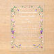 Celebrate your special day with the timeless beauty of our Elegant Wildflower Clear Acrylic Wedding Invitation. Featuring a delicate border of hand-painted wildflowers in soft pinks, purples, and greens, this transparent invitation offers a unique and sophisticated way to invite your guests. Perfect for garden weddings, spring celebrations, or romantic outdoor ceremonies, this design blends modern elegance with natural charm. Customize with your personal details to create a keepsake that will be cherished forever.
