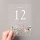 Add a touch of natural beauty to your wedding decor with our Elegant Wildflower Meadow Wedding Table Number Cards. These charming table cards feature a vibrant border of watercolor wildflowers and foliage in shades of pink, yellow, purple, blue, and green along the bottom, set against a frosted or transparent acrylic background. Perfect for spring and summer weddings, the rustic wildflower design brings a fresh, garden-inspired feel to your celebration. Personalize each card with your names, wedding date, and table number. To order, add each table number individually to your cart and check out when you’re ready.