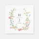 Add an elegant, personalized touch to your reception with this romantic wildflower wedding napkin. Featuring a delicate watercolor floral wreath in soft blush, blue, and golden hues, this design beautifully frames your custom monogram and wedding date for a timeless, garden-inspired look.