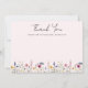 Celebrate love and gratitude with our enchanting Elegant Wildflower Meadow bridal shower thank you card. Delicately crafted with vibrant hues of pink, yellow, purple, blue, and green, a lush array of wildflowers and foliage adorn the bottom, evoking the freshness of spring and the warmth of summer. "Thank You" is elegantly scripted atop, with the option to personalize with the bride-to-be's future name or custom text below, adding a personal touch to your appreciation. The wildflower thank you card provides space on the front and back for your typed or handwritten message. Whether expressing gratitude for gifts or heartfelt wishes, this charming card is the perfect way to convey your thanks at spring and summer bridal showers.
