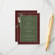 Introducing our enchanting winter wedding details enclosure card, where timeless elegance meets the beauty of the season. The rich burgundy background, softly distressed with white accents, sets a captivating tone for your special day. In the dark sage green text area, your wedding details stand out, surrounded by a delicate cream frame that adds a touch of refinement. Embrace the spirit of winter with a breathtaking frame of lush greenery, featuring holly adorned with rich red berries, mistletoe with its delicate white berries, and the timeless allure of green pine. Created by Simply Farmhouse Press.