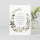 a lovely design with elegant text and a watercolor floral wreath of wonderful winter blooms. The features of this wedding invitation can be personalized.