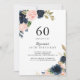 This elegant winter floral 60th birthday party invitation is perfect for a simple birthday party. The design features beautiful hand-painted dark blue, blue, navy, pink , blush, gold flowers and green foliage, bunched into elegant bouquets.