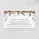 A book request insert card for baby shower. Featuring watercolor winter greenery and florals with poem: "ONE SMALL REQUEST, WE HOPE NOT TOO HARD PLEASE BRING A BOOK INSTEAD OF A CARD THEY'LL CHERISH THE BOOK, WELL LOVED OR BRAND NEW PLEASE SIGN THE INSIDE WITH A MESSAGE FROM YOU!"