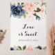 This elegant winter floral love is sweet sign is perfect for a modern wedding or bridal shower. The design features beautiful hand-painted dark blue, blue, navy, pink , blush, gold flowers and green foliage, bunched into elegant bouquets.