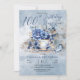 Elegant, classy and sophisticated blue winter florals with a beautiful blue bird sitting on the tea saucer teacup design "100th Birthday Par-Tea".