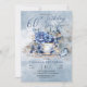 Elegant, classy and sophisticated blue winter florals with a beautiful blue bird sitting on the tea saucer teacup design "60th Birthday Par-Tea".