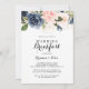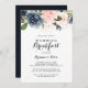 This elegant winter floral wedding breakfast invitation is perfect for a modern day after the wedding family and friends get together breakfast. The design features beautiful hand-painted dark blue, blue, navy, pink , blush, gold flowers and green foliage, bunched into elegant bouquets.