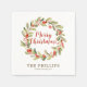 A stylish watercolor Christmas wreath with red berries and the text Merry Christmas in script lettering. Personalize your Christmas party with these elegant holly berry wreath luncheon napkins. All of the text is editable. Designed for you by Blackberry Boulevard.