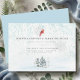 This elegant winter wedding invitation showcases a beautiful watercolor pine tree forest with a red cardinal perched amidst the snowy landscape. The rustic mountains and evergreen details create a charming backdrop, perfect for your Christmas tree-themed wedding. The bride and groom's names and wedding details are elegantly displayed in classic serif typography, with the card reversing to a soft, complementary blue. A perfect choice for a winter wedding in the mountains, this invitation can also be digitally downloaded. For more winter wedding ideas and rustic forest invites, visit www.zazzle.com/lovelypaperboutique.