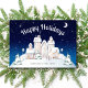 This elegant holiday card features a peaceful snowy winter village on a hillside. Perfect for sending season's greetings to clients, employees and everyone on your list. Front of card features "Happy Holidays" and your company name. Back of card features your personalized holiday message. Celebrate the season with this elegant holiday card from Cherry Lane Designs!