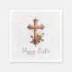 Elegant Wooden Cross with Pink Flowers Easter Napkin