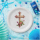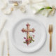 Elegant Wooden Cross with Pink Flowers Paper Plate