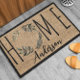 Welcome your family and friends with this elegant, country, design that features a faux burlap background, the word HOME, and your family name. The "O" in home is a green leaves wreath. Click "Personalize" to add your own name. If you need help with customization, please email me at zazzlevibes@gmail.com Thanks for stopping by www.zazzle.com/WhisperingPines.