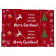 Modern, elegant, and cute Christmas gift bag for kids with the words "Merry Christmas" in stylish typography, a personalized dedication now reading "To Amber / with love / from Santa," snowflakes, an illustration of a unicorn (with a red and golden mane and tail) pulling Santa in his sleigh, and a Xmas tree. On a red background with snowflakes.