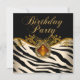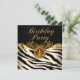 Elegant Zebra Caramel Amber Black Gold Birthday Invitation