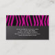 Business card with a pink zebra print design. This card is ready for customization with your business information. All text can be modified - change the style, colors, sizes, add or remove text fields to suit your needs. If you need any help please email Kirsty on kirsty_pargeter@yahoo.co.uk