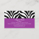 © 2010 Socialite Designs. Posh animal print business card ready for you to personalize. White background colour can be changed as well as the font. Matching letterhead as well as other zebra print designs and products are available.