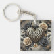 Elegant Zebra Print Heart & Roses Keychain