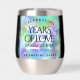 Faites du 24e anniversaire du mariage opal une célébration inoubliable avec ce tourbillon de vin en acier inoxydable commémoratif! Des lettres élégantes avec des confettis hexagonaux sur un arrière - plan opal iridescent ajoutent une touche mémorable à cette occasion spéciale et à ce jalon extraordinaire. Customisez avec le nom du couple, la date du mariage et le message de félicitations. Reverse affiche un design identique. Design © W.H. Sim. Voir plus sur zazzle.com/expressionsoccasions