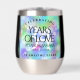 Faites du 34e anniversaire du mariage opal une célébration inoubliable avec ce tourbillon de vin en acier inoxydable commémoratif! Des lettres élégantes avec des confettis hexagonaux sur un arrière - plan opal iridescent ajoutent une touche mémorable à cette occasion spéciale et à ce jalon extraordinaire. Customisez avec le nom du couple, la date du mariage et le message de félicitations. Reverse affiche un design identique. Design © W.H. Sim. Voir plus sur zazzle.com/expressionsoccasions