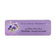 Conception d'étiquette d'adresse de retour de violettes violettes aquarelles élégantes nostalgiques sur fond de lavande.