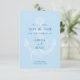 Élégante carte Save the Date avec une grande ancre sur fond d'une douce teinte bleue. L'illustration de l'ancre a un look vintage tandis que le design épuré est moderne. Cette carte sans photo est parfaite pour un mariage sur la plage ou un mariage de destination. Ce design élégant donnera le ton pour une occasion unique et mémorable.