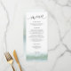 Elégant Lac Abstrait & Arbres Aquarelle Mariage Menu : Ce menu aquarelle peint présente des arbres abstraits autour d'un lac. Il a des teintes douces de vert et de bleu. Parfait pour un mariage au bord du lac ou à destination.