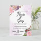 Elégant modèle d'invitation de mariage avec rose couleur aquarelle poussiéreuse et feuilles verdoyants.