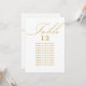 Carte de siège mariage blanc et or avec calligraphie élégante et typographie modifiable. Un design minimaliste simple et moderne qui s'adapte à vos couleurs mariages. Le tableau est écrit en écriture manuscrite et le modèle est prêt à modifier le numéro de table et votre liste de sièges d'invités.