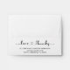 Élégante calligraphie noir blanc "Amour et remerciements" Merci Mariage Retourner Enveloppes d'adresse. Personnalisez-les avec vos noms et informations d'adresse de retour. Caractéristique un texte "amour et merci" est écrit dans une jolie main moderne lettré typographie de police coeur. Ces enveloppes peuvent être utilisées pour des occasions spéciales comme des Mariages, des Anniversaires, des Fêtes et des événements spéciaux.
