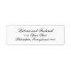 Élégante étiquette d'adresse de mariage avec un design simple et classique avec trois lignes de texte dans une police de calligraphie noire sophistiquée sur un arrière - plan blanc. Ces étiquettes d'adresse de retour élégantes sont parfaites pour un mariage formel et sont une excellente façon d'ajouter une touche personnelle à vos enveloppes.