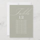 Sage Green mariage carte de séjour avec calligraphie élégante et typographie modifiable. Un design minimaliste simple et moderne qui s'adapte à vos couleurs mariages. Le tableau est écrit en écriture manuscrite et le modèle est prêt à modifier le numéro de table et votre liste de sièges d'invités.