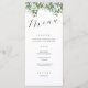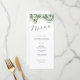Ce design minimaliste élégant à la carte de mariage présente une floraison de verdure et de fleurs blanches, complétée par une typographie calligraphique classique. Un menu mariage classique pour habiller vos tables de manière harmonieuse et s'adapter à votre thème mariage tout au long de vos idées de décoration mariage.