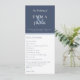 Élevez votre cérémonie avec cette carte raffinée de programme de mariage, avec vos noms en blanc immaculé au-dessus d'un arrière - plan bleu ardoise audacieux, accentué d'une marque d'esperluette pour une touche de modernité. L’ordre des événements du programme est élégamment dactylographié ci-dessous dans une police serif classique moderne, présentée sur un arrière - plan blanc propre pour une lisibilité sans effort. Le mélange harmonieux de bleu audacieux et de blanc minimaliste crée un design cohésif et sophistiqué qui complète à la fois l'esthétique mariage formelle et contemporaine. Idéal pour les couples à la recherche d'une façon élégante et intemporelle de guider les clients à travers leur journée spéciale.