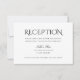 Customisez cette belle élégante carte de réception de mariage élégante, blanche et noire. Design classique moderne, simple et soigné avec du texte noir sur un arrière - plan blanc. Tous les autres articles correspondants peuvent être trouvés dans Collection Mariage élégant et classique.