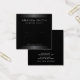 Elégante, carré, carte d'affichage à oreille noire avec bordures de dégradé satiné gris et champs modèles pour vos informations professionnelles et logo personnalisé.