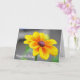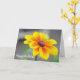Photographie florale d'une belle élégante fleur jaune orangé simple dans la nature. Joyeux anniversaire à l'extérieur et sentiment à l'intérieur peuvent être personnalisés.