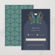 Cette élégante carte de boîtier RSVP de la collection Gatsby présente des fleurs de style art déco dessinées à la main dans des tons verts et turquoise avec un pop de jaune moutarde. Les clients peuvent envoyer leur réponse par courrier électronique ou vous pouvez inclure des instructions pour eux à RSVP en ligne.