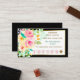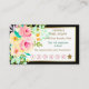 Voici une jolie façon de traiter vos clients fidèles à un rabais de temps en temps ! Cette carte est conçue pour un salon de coiffure ou d'ongles, mais tout le texte est facilement customisé, de sorte que vous pouvez le modifier pour convenir à presque n'importe quel commerce de détail. L'avant est orné d'un beau bouquet de roses roses et pêche. Les couleurs sont rose, or clair, aqua et vert, avec une touche de violet. Votre texte personnalisé est en or et vert turquoise sur le côté droit, et placé sur une bannière blanche doublée d'or. Une bordure noire spectaculaire donne élégance et style. Le dos de la carte est également noir, avec trois champs de texte pour vous permettre de customiser. Classique ! *Cette conception utilise des illustrations de www.CreateTheCut.com.
