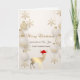 Élégant cerf de Noël en faux or avec un chapeau de Père Noël, des boules et des flocons de neige sur fond crème. Carte idéale à envoyer depuis votre entreprise ou organisation commerciale ou depuis votre famille. . . Personnalisez en mettant votre nom après 'de la part de' sur le devant de la carte....