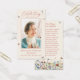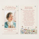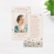 Il s'agit d'une célébration moderne et élégante de la carte de prière commémorative de la vie. Le design comprend une belle police calligraphie et de beaux fleurs sauvages en rose pastel, violet, bleu, jaunes et rouille ou en terre cuite et aussi des papillons délicats floutants. Cette carte de prière funéraire peut facilement être personnalisée avec votre propre photo pour créer un hommage spécial pour votre être cher en utilisant le modèle fourni. Veuillez contacter le concepteur pour toute question concernant ce design ou pour tout produit correspondant.
