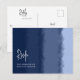 Une élégante carte de réponse de mariage avec choix de repas présentant un motif aquarelle expressif de bandes dessinées à la main dans une teinte profonde de bleu océan. Un choix charmant sur le thème nautique pour un mariage sur la plage ou une réception sur la plage.
