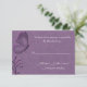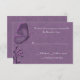 Belle réponse carte RSVP faite avec un riche arrière - plan damassé violet avec des graphiques de papillon et de fleurs en relief, sur le côté gauche. Customisez le texte en fonction de vos besoins. Invitation de fête d'anniversaire correspondant disponible.