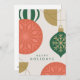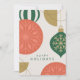 Cette carte de vacances magnifiquement conçue présente de grands ornements festifs dans les tons coralliens, verts et or, ornés de motifs complexes de flocs de neige. L'arrière - plan minimaliste apporte une touche moderne à un motif de vacances classique, tandis que les touches dorées subtiles apportent une touche d'élégance. Le message "Joyeuses Fêtes" en gras complète la carte, ce qui la rend parfaite pour envoyer des souhaits saisonniers chaleureux à des proches.