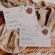 Remplissez votre papeterie mariage avec notre carte de réponse magnifiquement coordonnée de la Collection Terracotta. Doté d'éléments botaniques délicats, cette carte RSVP complète parfaitement votre suite d'invitation avec ses tons chauds et terreux. Conçu pour une personnalisation sans effort, il offre suffisamment d'espace pour que vos invités puissent confirmer leur présence et leurs préférences en matière de repas, ajoutant une touche personnelle à votre journée spéciale. Imprimée sur du papier de qualité supérieure, cette carte de réponse dégage une élégance intemporelle, assurant que vos détails mariages sont aussi mémorables que votre célébration.