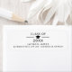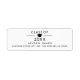 Élégante classe de graduation en noir et blanc de 2023 adresse de retour avec un casquette diplômé de l'université, le nom du diplômé, et texte modifiable.