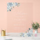 Élégant panneau d'accueil fleuri mariage avec vos noms, date mariage et emplacement mariage au centre du design. Des bouquets de roses blanches et bleues poussiéreuses et des hydrangées avec des feuilles d'eucalyptus luxuriants et de la verdure ornent les coins d'un arrière - plan acrylique transparent. Ce panneau d'accueil bleu floral et poussiéreux est parfait pour votre mariage de printemps ou d'été ! Conçu pour coordonner avec notre élégante collection de mariages Floraux Bleus Dusty.