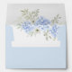 Enveloppe à thème hydrangée bleu clair, élégante et colorée, avec un design floral bleu foncé.