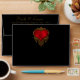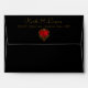 Enveloppes mariages rouge noir et or avec un beau coeur rouge et or et intérieur rouge noir et or damassé. Ces élégantes enveloppes rouge noir et or sont facilement customisées avec vos détails. Utilisez simplement un stylo à encre blanche ou dorée pour remplir vos noms et adresses d'invités. Le coeur est centré sur l'avant puisque l'adresse de retour est sur le rabat arrière.